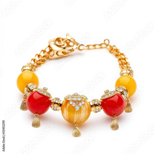 Elegant Colorful Bracelet with Red and Yellow Beads and Gems