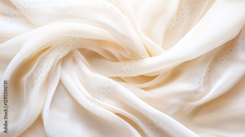 Elegant Cream Silk Fabric Draped Beautifully Creating Soft Waves and Textures : Generative AI