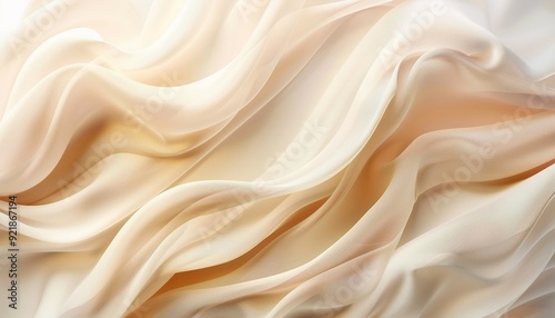 Elegant Cream-Colored Abstract Design with Flowing Curves and Soft Waves, Calming Texture, Background with Copy Space