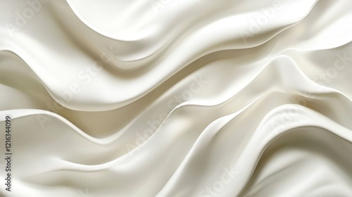Elegant Creamy White Silk Fabric Drapery, Luxurious Soft Texture Background, Abstract Waves and Curves