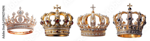 Elegant Crowns of Various Designs with Intricate Details and Gems, PNG bundle collection, Isolated on Transparent Background