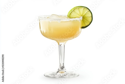 Elegant crystal glass with floral garnish on white background. Artificial Intelligence image