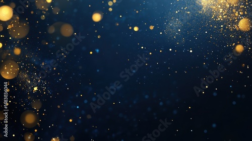 Elegant dark blue background with sparkling gold light particles