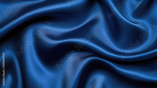 Elegant dark blue silk fabric draped smoothly, showcasing a rich texture and luxurious sheen, ideal for sophisticated design applications.