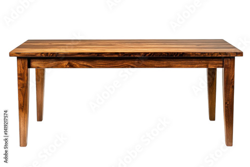 Elegant dark wood dining table showcasing rich grain detail against a black background Simple on transparent background