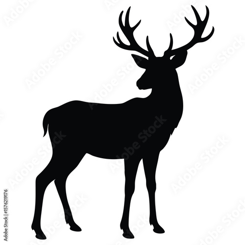 Elegant deer silhouette displays its majestic antlers against a stark white transparent background