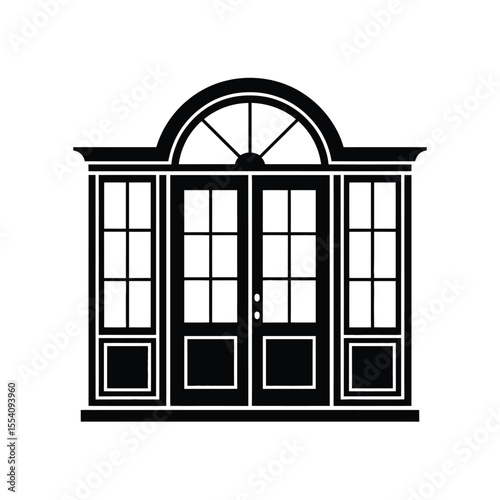 Elegant Double Door with Sidelights and Arched Top in Black Silhouette