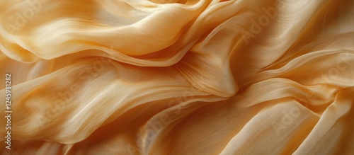 Elegant draped golden fabric with flowing waves and soft texture creating a luxurious and rich visual appeal for design purposes