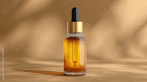 Elegant Dropper Bottle with Amber Liquid on Soft Light Background