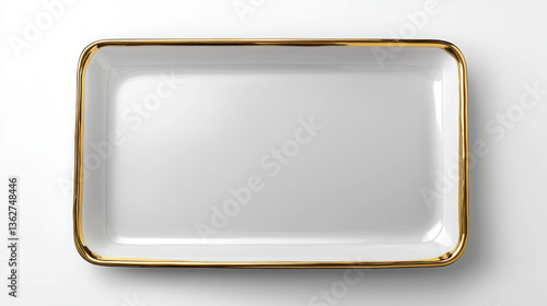 Elegant empty rectangular porcelain plate with gold rim for luxurious dining settings