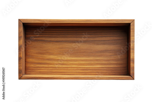 Elegant empty wooden tray isolated on black background showing rich wood grain texture and on transparent background