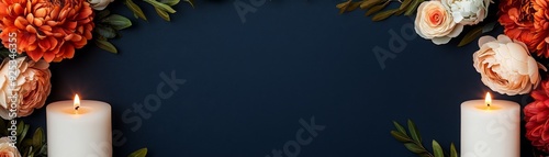 Elegant floral arrangement with candles on a dark background, perfect for celebrations and special occasions.