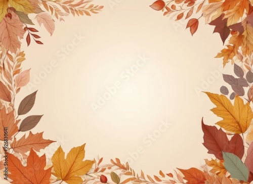 Elegant Floral Border Design with Autumn Leaves on a Light Background with Copy Space