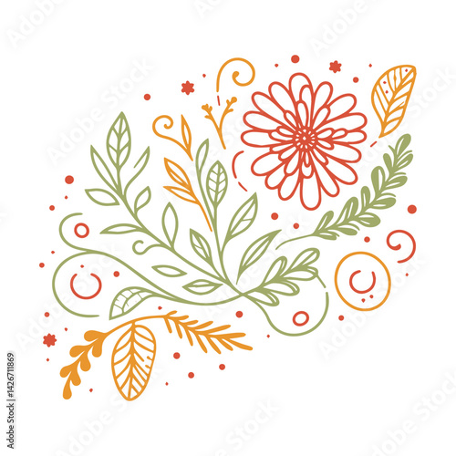 elegant floral line drawing pattern with minimal one line flowers and ornate leaf textures for contemporary cushion covers