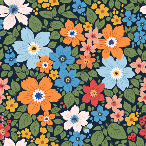Elegant floral pattern in bright colorful flowers. Liberty style. Floral seamless background for fashion prints. Ditsy print. Blooming meadow. Seamless vector texture. Spring bouquet.