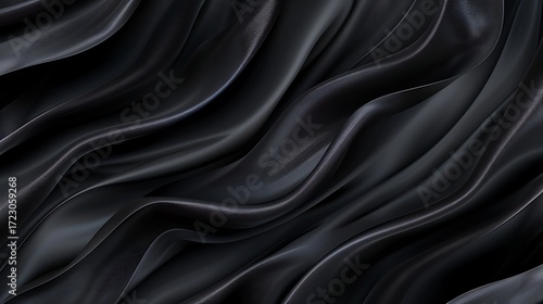 Elegant Flowing Black Satin Fabric Texture with Smooth Curves and Waves for Background Design and Artistic Use