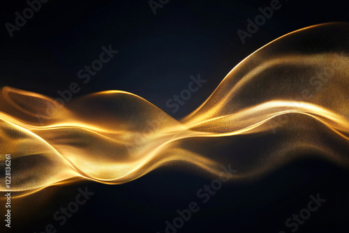 Elegant Flowing Golden Waves with Glowing Particles on a Dark Background, Abstract Futuristic Texture and Luxury Artistic Design