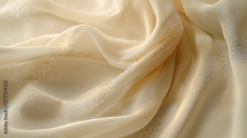 Elegant flowing light yellow fabric, gently curved and folded, creating a soft and graceful texture.