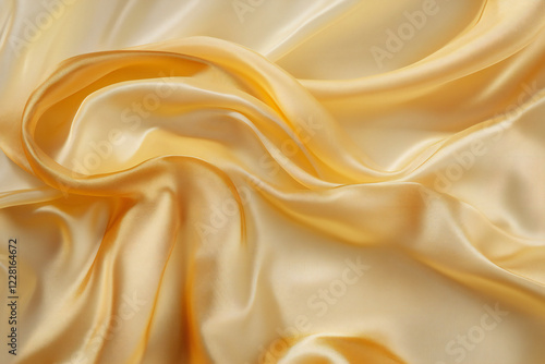 Elegant Flowing Silk Fabric with Delicate Golden Folds and Soft Texture, Luxurious Abstract Textile Background with Pastel Tones
