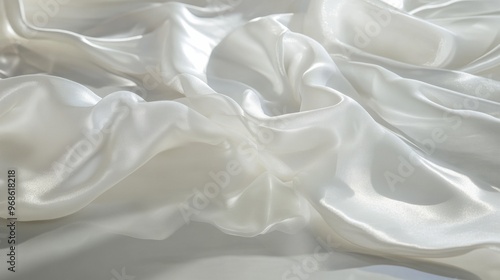 Elegant flowing white satin fabric close-up