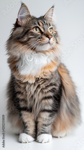 Elegant fluffy cat gazing thoughtfully into the distance in a serene indoor setting