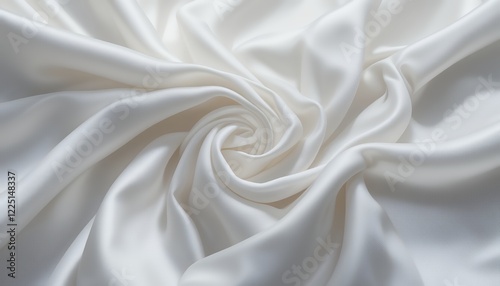 Elegant folds of smooth white silk fabric with a spiral pattern, showing texture and soft light