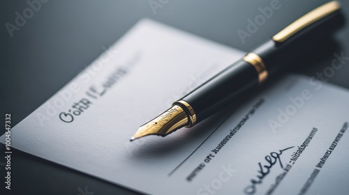 Elegant fountain pen resting on a blank document with a signature in an office setting during daylight