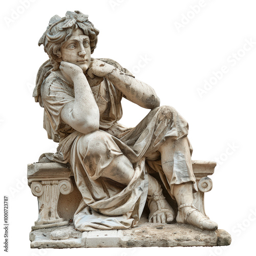 Elegant Garden Statue of a Thoughtful Figure Isolate on a White Background Transparent Background