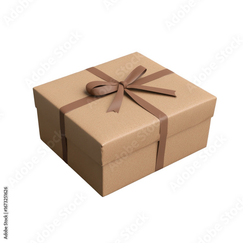 Elegant Gift Box Presentation: A beautifully crafted square box adorned with a matching brown ribbon, symbolizing thoughtfulness and the anticipation of the special occasion.