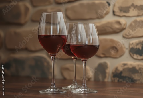 Elegant glass of rich red wine placed on a rustic brick wall backdrop ideal for sophisticated and cozy dining experiences
