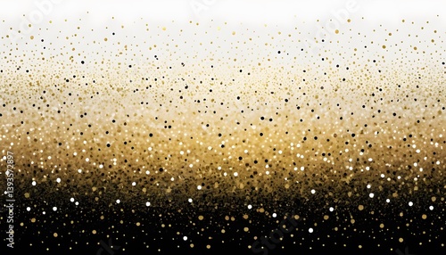 Elegant Gold And White Background, Sparkling Texture With Golden And Black Dots. Festive Shimmer For Celebrations. Dreamy, Ethereal Design For Invitations And Announcements. Abstract Background.