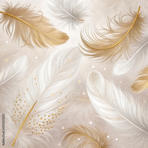 Elegant Gold and White Feathers Abstract Art, feather art, abstract background