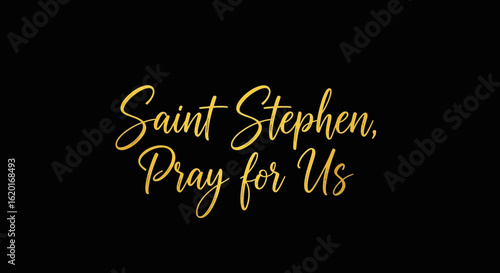 Elegant gold calligraphy Saint Stephen Pray for Us on black background, perfect for religious designs and print.