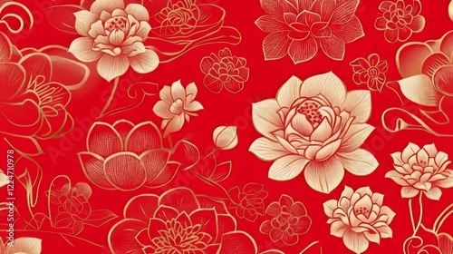 Elegant Gold Floral Pattern Red Background Seamless Design