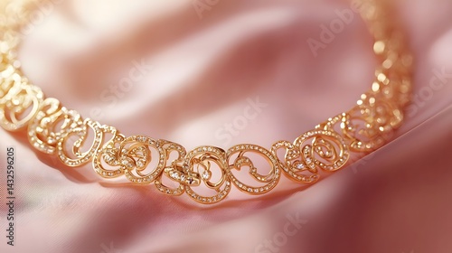 Elegant Gold Necklace with Intricate Design and Sparkling Details