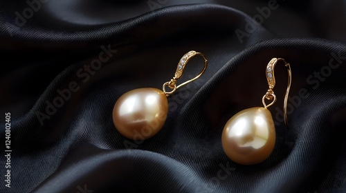 Elegant Gold Pearl Earrings on Luxurious Black Satin Fabric