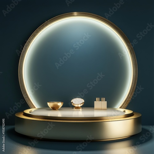 Elegant Gold Teal Product Display Platform with Lit Circle