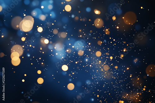 Elegant Golden and Blue Bokeh Lights with Sparkling Abstract Glitter, Festive Glow, and Dreamy Holiday Ambiance