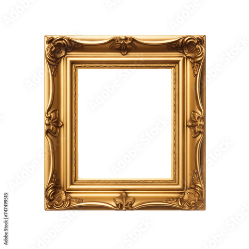 Elegant Golden Baroque Style Picture Frame Isolated on transparent Background