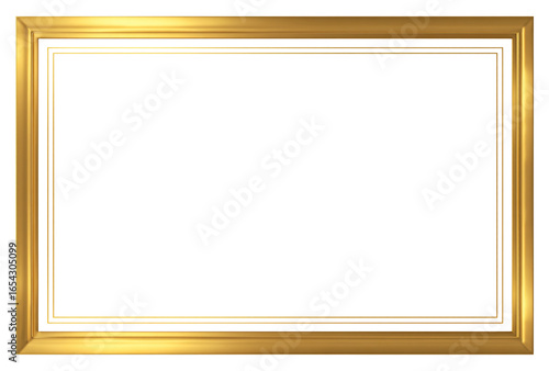 Elegant golden rectangular frame isolated on transparent background, perfect for displaying artwork or photos in a classic and luxurious style