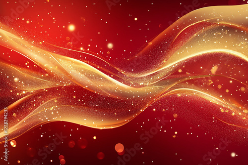 Elegant Golden Waves Flowing Over Vibrant Red Background, Luxury Abstract Design with Smooth Metallic Texture and Festive Curves