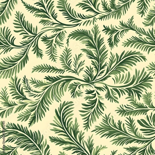 elegant green fern leaf pattern on cream background