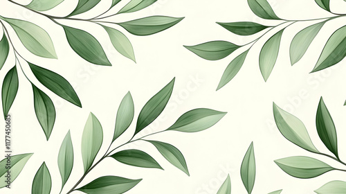 Elegant green leaves pattern, botanical illustration, white background, nature design, ideal for website banners.
