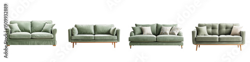 Elegant green sofas with unique designs, showcasing modern aesthetics, comfortable textures, and high-quality materials for contemporary living spaces.