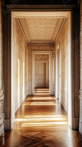 Elegant hallway with light and classic architecture details
