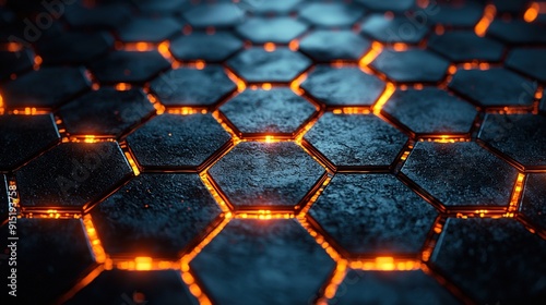 Elegant hexagonal metal design with ambient light beneath, providing a sophisticated background for professional presentations