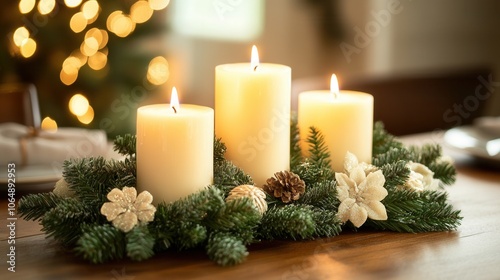 Elegant holiday table centerpiece featuring candles and greenery for a festive gathering