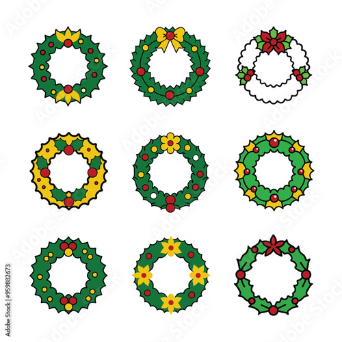 Elegant Holiday Wreath Vector Collection for Christmas Projects"