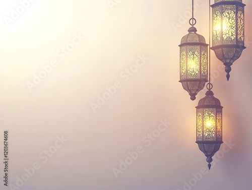 Elegant Illuminated Moroccan Lanterns Hanging Against Soft Background