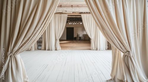 Elegant Indoor Space with Soft Drapes and Natural Lighting
